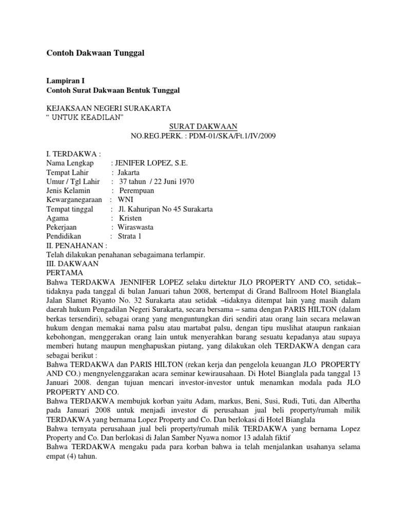 | Lihat Doc Contoh Contoh Bentuk Surat Dakwaan Ridwan Daiman Academia Edu |